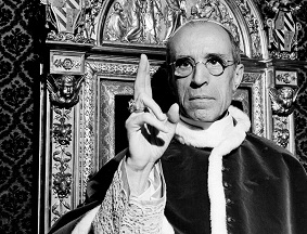 De geringe oorlogservaringen ten spijt zou ‘de Duitse catastrofe’ op Hochhuth een blijvende indruk maken en hét thema van zijn werk worden. Dat hij zich wierp op de rol van de paus en de rol van de rooms-katholieke kerk tijdens de oorlog kan niet verklaard worden uit een katholieke achtergrond: Hochhuth was van huis uit protestant. Het thema de paus, de kerk en de Holocaust stond op de agenda sinds de dood van Paus Pius XII (foto) in 1959. Hochhuth trok naar Rome en sprak daar met hooggeplaatste geestelijken, al had hij geen toegang tot de Vaticaanse archieven. Hoewel hij zich grondig inlas en zijn toneelstuk voorzag van een ‘historische belichting’, verklaarde hij kort nadat De plaatsbekleder wereldwijd opzien had gebaard en voor ophef had gezorgd nadrukkelijk dat hij geen historicus was en in eerste aanleg een drama had willen schrijven.