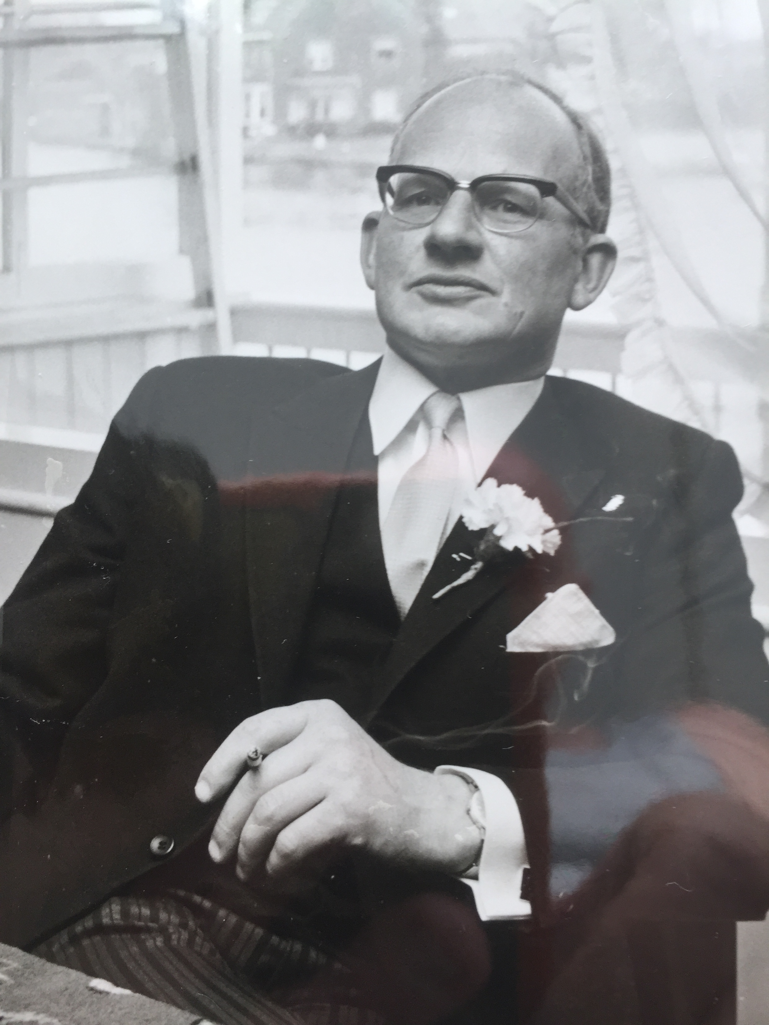 Mijn vader (foto, hier in zijn veertiger jaren) schijnt ook een speciale band met zijn vader te hebben gehad. De kerk en het gereformeerde leven was een voornaam gespreksonderwerp tussen hen – mijn vader zette zich als jongen niet af tegen kerk en geloof, die hem boeiden en waarin hij geloofde.