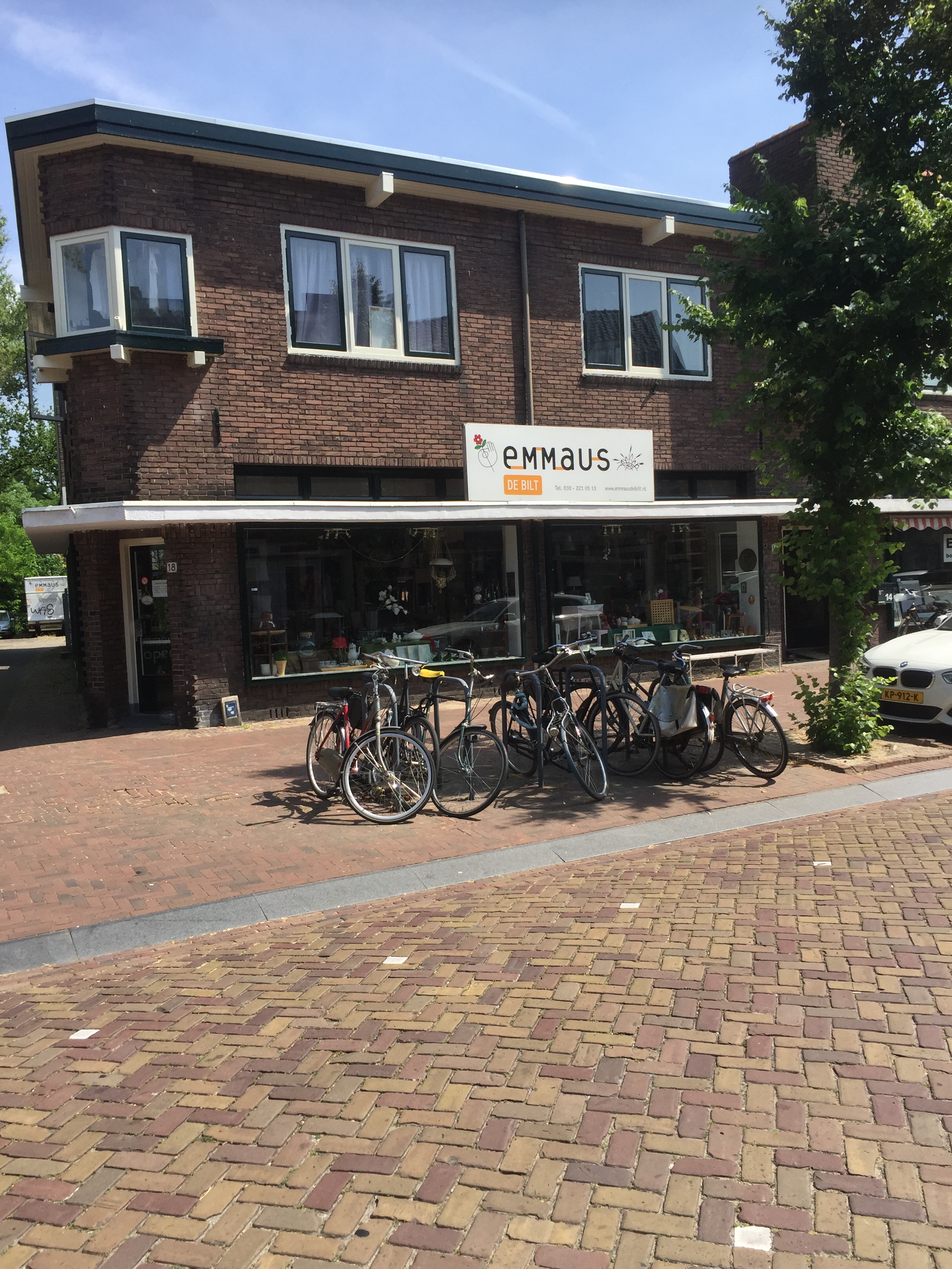 Nog steeds, want dit bezoek aan het huis was niet het eerste dat ik de afgelopen negen jaar aflegde. Steeds als ik naar mijn geboortedorp fietste de afgelopen jaren, fietste ik ook even langs het huis dat eens mijn ouderlijk huis was. Ik had een goed excuus voor mijn bijna maandelijkse terugkeer. In de buurt bevinden zich zowel een Emmaüswinkel (foto) als een antiquariaat. Bij beiden word je als huisvriend ontvangen, waaraan de frequentie van het bezoek natuurlijk debet is. Vooral in het antiquariaat word je met koffie en koek onthaald. Steevast neem ik me voor met een boek de zaak te verlaten, wat ook vrijwel altijd lukt.
