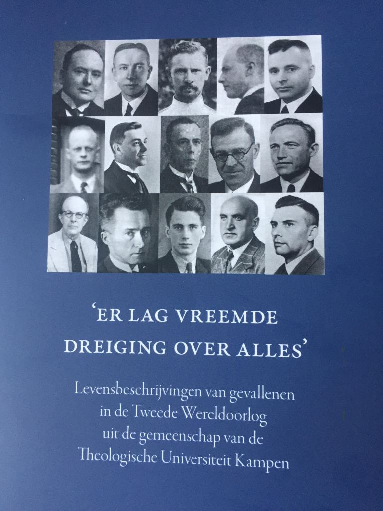 Op donderdagmiddag 14 april sprak ik bij de presentatie van het boek ‘Er lag vreemde dreiging over alles’. Levensbeschrijvingen van gevallenen in de Tweede Wereldoorlog uit de gemeenschap van de Theologische Universiteit Kampen onderstaande lezing uit. Met Tjeerd de Jong beschreef ik zes van de vijftien portretten van gereformeerden, wier levensgang voor en tijdens de oorlog ik hier besprak. In het onder redactie van collega George Harinck verschenen boek staat hun levensverhaal en hun tragische einde uitgebreid opgetekend. In de lezing deed ik iets dat ik in de afzonderlijk beschreven biografieën niet kon doen: een vergelijking trekken tussen de zes levens.